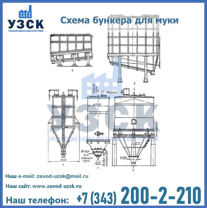 Завод «УЗСК» в Аксу осуществляет проектирование, производство и продажу бункеров для муки. Всю информацию, касающуюся производства, реализации и установки емкостного оборудования можно узнать на нашем сайте или по телефонам, указанным в разделе «КОНТАКТЫ».