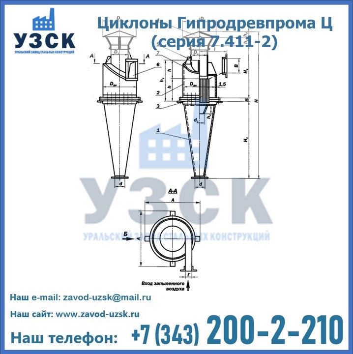 Циклоны Гипродревпрома Ц (серия 7.411-2) высокого качества можно купить в компании «УЗСК» в Аксу. Наши специалисты предоставят всю необходимую информацию информацию и помогут с выбором модели циклона. Подробные технические характеристики, конструкцию, параметры, ассортимент и стоимость продукции можно также найти на сайте УЗСК.