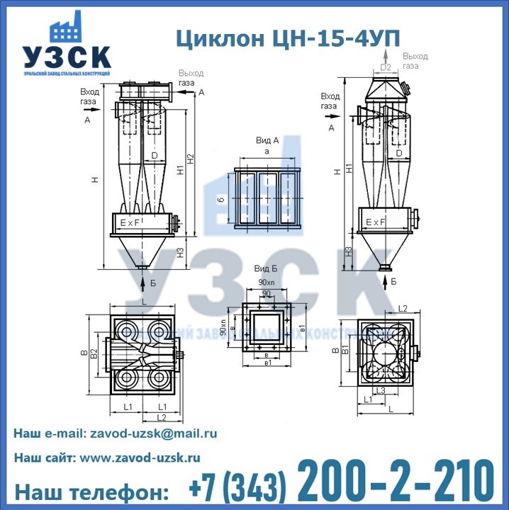 Завод «УЗСК» в Аксу предлагает большой выбор циклонов ЦН-15-800×4УП и прочих устройств, полностью укомплектованных и готовых к эксплуатации. Мы гарантируем соответствие оборудования всем требованиям ГОСТ и ТУ, износостойкость и высокую производительность предлагаемого оборудования. Уральский Завод Стальных Конструкций изготавливает и продает надежное, эффективное и производительное оборудование, имеющее длительную гарантию и большой эксплуатационный ресурс. Если требуется изготовить циклон нестандартных размеров, то такой вариант выполнения заказа тоже предусмотрен, так как предприятие имеет собственные производственные площади и надежных поставщиков. На все поставляемое или производимое оборудование имеются чертежи и прочая техническая документация. Заказать и купить циклоны или прочее оборудование высокого качества и по доступной цене можно через наш сайт или по указанному в разделе «Контакты» телефону.