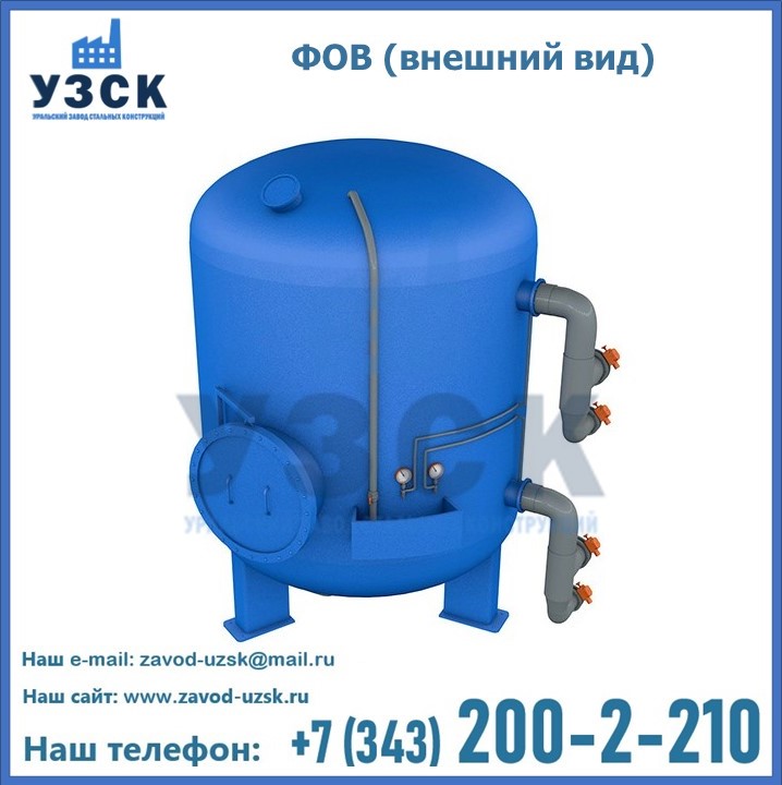 Удаление взвешенных веществ различного уровня дисперсности из рабочих жидкостей эффективно проводит фильтр осветлительный типа ФОВ (скорый или механический) — вертикально-цилиндрической формы установка, разработанная для систем водоподготовки различного класса. Оборудование представляет собой однокамерный агрегат для очистки воды рекомендованный для применения на станциях очистки стоков, в коммунальных котельных, на ТЭЦ, в промышленных отопительных системах и пр. Заказать производство ФОВ фильтров предлагает наш Уральский завод стальных конструкций в Аксу. У нас можно купить фильтрационное оборудование различного класса и типа, в том числе фильтры ФОВ из нержавеющей стали.