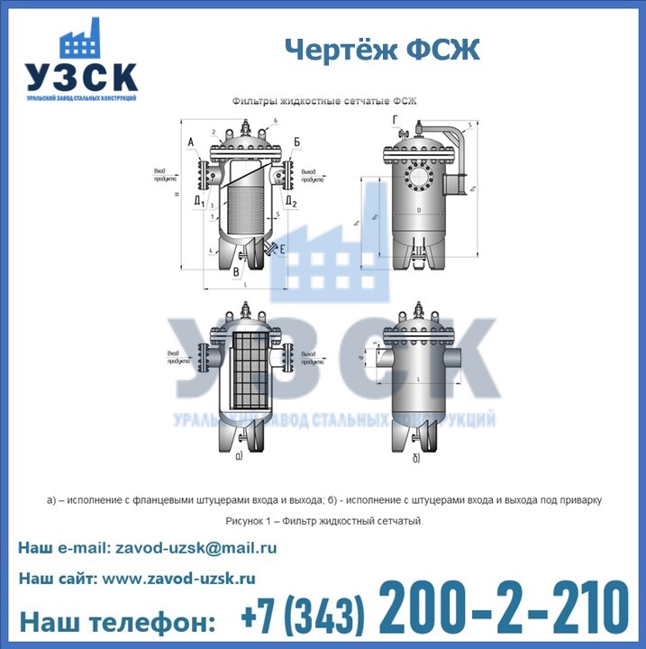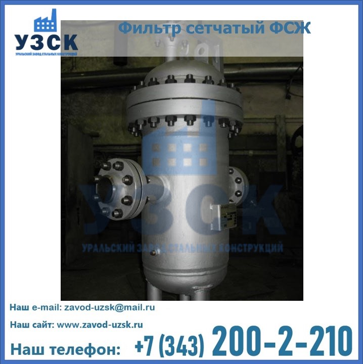 Очистку перекачиваемых жидкостей на предприятиях нефтяной, пищевой, горнорудной, фармацевтической и других отраслей промышленности эффективно выполнять с помощью жидкостного сетчатого фильтра — емкостное оборудование цилиндрической формы со съемной крышкой и элементом фильтрации внутри. Оснащенные им всасывающие линии насосных станций и установок защищены от проникновения твердых частиц в функциональные узлы гидравлической системы. Оборудование служит для перекачивания токсичных, агрессивных и иных эмульсий, суспензий, жидкостей. Купить фильтр сетчатый жидкостный ФСЖ в Аксу с гарантией производителя предлагает «Уральский завод стальных конструкций». Мы выполняем проектирование и изготовление ФСЖ по индивидуальным требованиям (климатическая зона, транспортируемая жидкость).