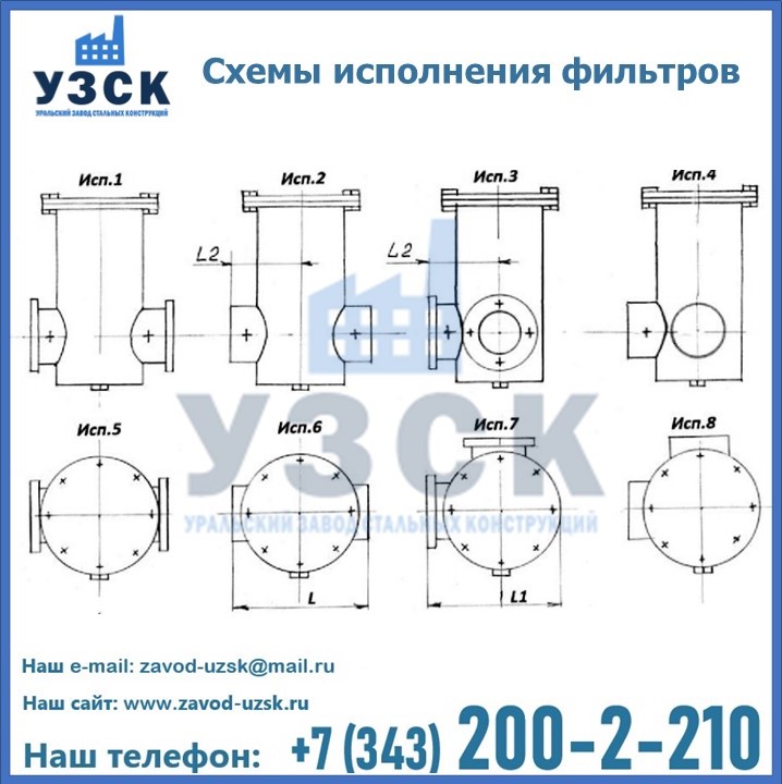 Из-за этого и разнится обозначение на ФГ и ФГУ, соответственно. Фильтры также могут быть вертикальными и горизонтальными, также может быть предусмотрена врезка сбросного трубопровода. Какой бы тип фильтра ни понадобился, завод «УЗСК» в Аксу занимается производством любого из них.