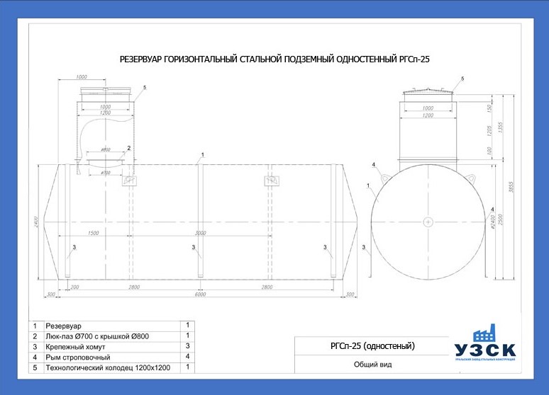 РГСДн-25: горизонтальный резервуар двустенный наземного расположения;